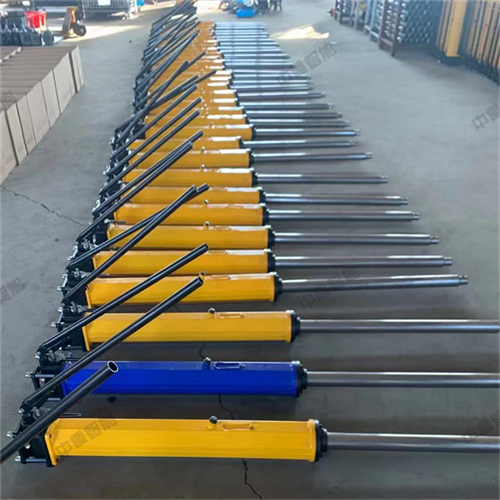 YT4-6A、YT4-8A型液壓推溜器,是為滿足煤礦炮采、普采工作面的需要而設(shè)計的手動移溜器具。與其它移溜器械相比,具有適應性強、機動性好、操作省力、工效高、易維修、安全可靠,比集中供油的液壓千斤頂移溜可大量節(jié)省投資,經(jīng)濟上合算。 YT4-6A、YT4-8A液壓移溜器結(jié)構(gòu)為缸體外壁的前部和后部同向分別固定裝有前液壓閥和后液壓閥,在兩閥之間的缸體外壁相對的兩側(cè)固定裝有定位軸;缸體通過定位軸座落在固定座上的縱向長孔內(nèi);固定座的底部固定裝有底板,底板靠近活塞桿一端向上翹起;固定座的頂部固定裝有嗆頂座,嗆頂座上部的槽形結(jié)構(gòu)向后傾斜,并與水平面成20°-24°夾角。本實用新型設(shè)計合理,液壓注液槍注液與缸體分離,推溜器移動方便,缸體兩端可調(diào);活塞桿可與擋煤板連接時正常接觸,延長設(shè)備使用壽命。