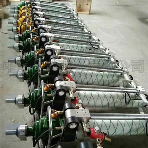 氣動錨桿鉆機適用于頂板硬度f≤10的煤、半煤巷巖及巖巷的錨護作業,集鉆孔、攪拌、安裝錨桿與一身。應用于煤礦的井下支護作業,也可適用于鐵礦、隧道的施工和護坡等作業。缸筒采用玻璃鋼制造,強度高、重量輕、耐腐蝕。旋轉機構主要由齒輪馬達、減速箱、超越軸承、輸出軸、鉆桿接頭、通水套組立及消聲器等組成。操縱機構主要由閥體、連接臂、手把組立及頂桿等組成。操縱手柄全部集中在手把組立上,操作簡單、維修方便。