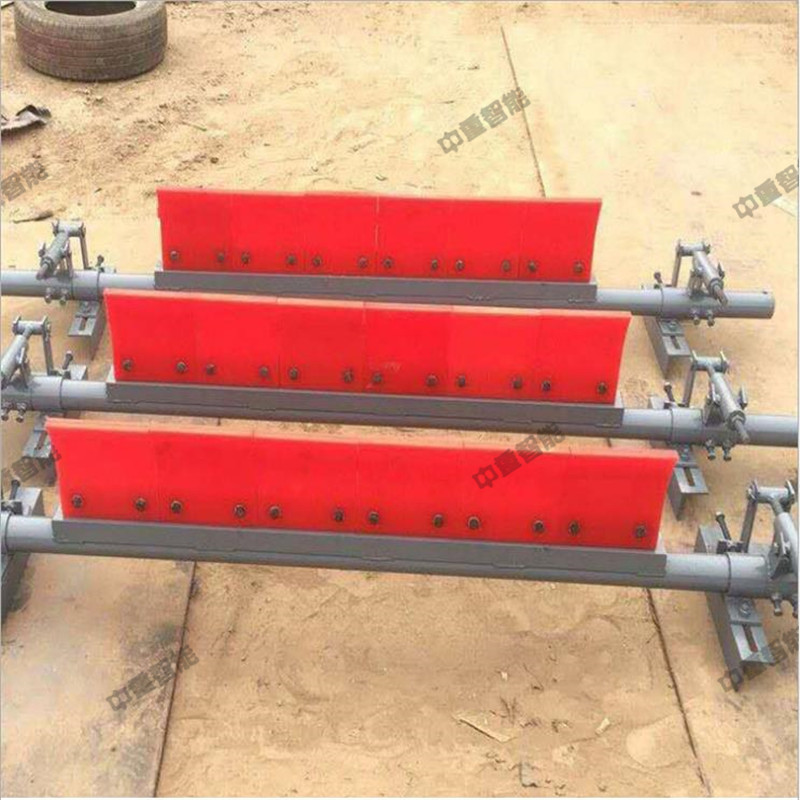 清掃器,刮板借彈簧壓力緊貼輸送帶的載荷面清掃卸載后粘結(jié)在輸送帶上的煤粉。清掃器在輸送機(jī)上有著不可忽視的作用。在運(yùn)行中,如果人為的清除機(jī)尾滾筒附著物,往往容易發(fā)生嚴(yán)重人身傷亡事故。而清掃器有及時(shí)、方便地、快速的清除滾筒附著物的特點(diǎn)。