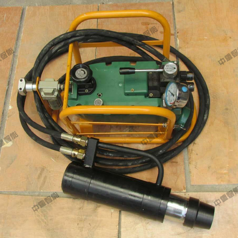 錨索張拉機(jī)具由張拉千斤頂、QYB-55型氣動液壓泵以及高壓膠管等組成,構(gòu)成一組煤礦巷道錨索預(yù)應(yīng)力張拉安裝的工具。張拉千斤頂內(nèi)置工具錨,不但實現(xiàn)自動錨固和自動退錨,而且保證了操作安全,提高了工作效率。
