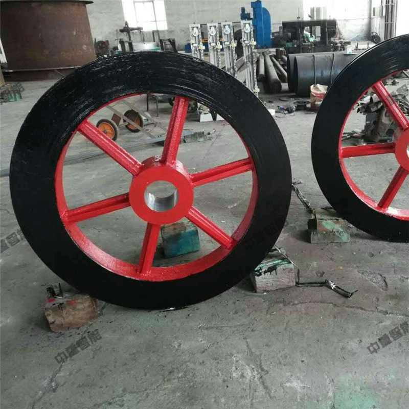 天輪安裝在井架上,作支撐,供礦井提升時(shí)支拖提升機(jī)卷筒到提升容器之間,引導(dǎo)鋼絲繩轉(zhuǎn)向之用。繩槽帶塑襯或膠塊,增加鋼絲繩的使用壽命。