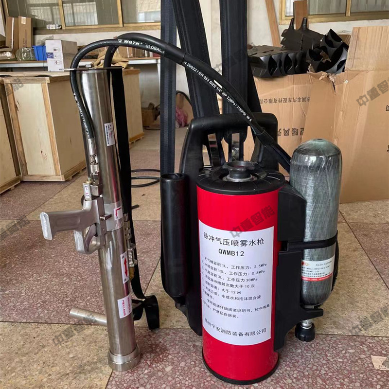 背負式細水霧滅火水槍是將空氣呼吸器和細水霧滅火裝置進行有機組合,既能滿足滅火操作人員方便攜帶進入火災現場進行滅火,又能滿足呼吸需要,且重量配置合理具有背負舒適,操作簡單,維護方便等特點。