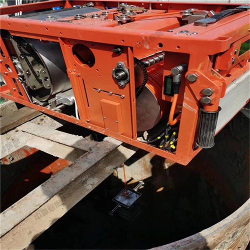 采用探針壓力測(cè)試法:沉渣探頭下放到孔槽底時(shí),電機(jī)自動(dòng)停止下放探頭,主機(jī)讀取探頭狀態(tài),當(dāng)探頭傾斜超過(guò)一定范圍時(shí)提示調(diào)整探頭位置直至探頭近似直立。主機(jī)控制探針緩慢伸出,同時(shí)測(cè)定探針壓力和伸出長(zhǎng)度,當(dāng)壓力大于一定值時(shí)停止,此時(shí)探針伸出長(zhǎng)度即為當(dāng)前位置沉渣厚度。