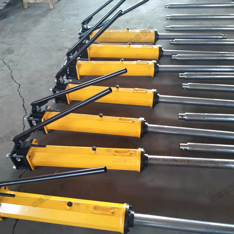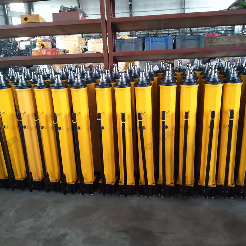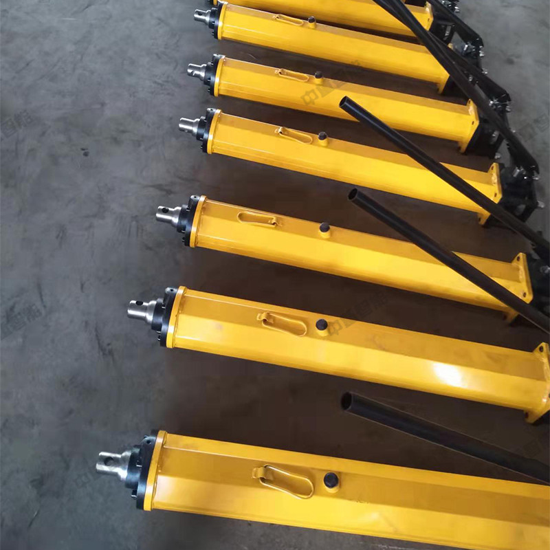液壓推溜器,是為滿足煤礦炮采、普采工作面的需要而設計的手動移溜器具。與其它移溜器械相比,具有適應性強、機動性好、操作省力、工效高、易維修、安全可靠,比集中供油的液壓千斤頂移溜可大量節省投資,經濟上合算。 YT4-6A、YT4-8A液壓移溜器結構為缸體外壁的前部和后部同向分別固定裝有前液壓閥和后液壓閥,在兩閥之間的缸體外壁相對的兩側固定裝有定位軸;缸體通過定位軸座落在固定座上的縱向長孔內;固定座的底部固定裝有底板,底板靠近活塞桿一端向上翹起;固定座的頂部固定裝有嗆頂座,嗆頂座上部的槽形結構向后傾斜,并與水平面成20°-24°夾角。本實用新型設計合理,液壓注液槍注液與缸體分離,推溜器移動方便,缸體兩端可調;活塞桿可與擋煤板連接時正常接觸,延長設備使用壽命。