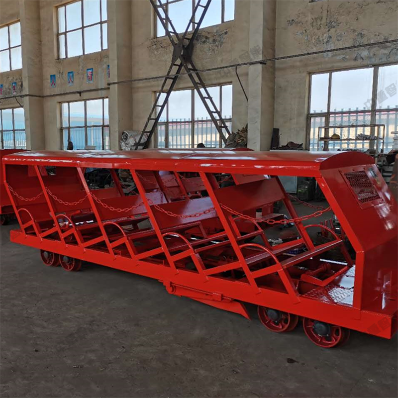 斜井人車是礦山斜井運送人員的重要安全設備。整個列車是由一頭車(S1)、二頭車(S2)、以及一定節數的掛車(G)和尾車(W)組 成、每節人車乘坐人員均為15人。根據斜井傾角和提升能力大小的不同,列車的組列節數一般是由3—5節組成,乘坐人員45—75人。XRB15型抱軌式斜井人車適用于600mm軌距,18kg/m、22kg/m、24kg/m的鋼軌,木枕、水泥枕及水泥整體道床,傾角10°—40°。無煤塵和瓦斯爆炸危險的斜井。