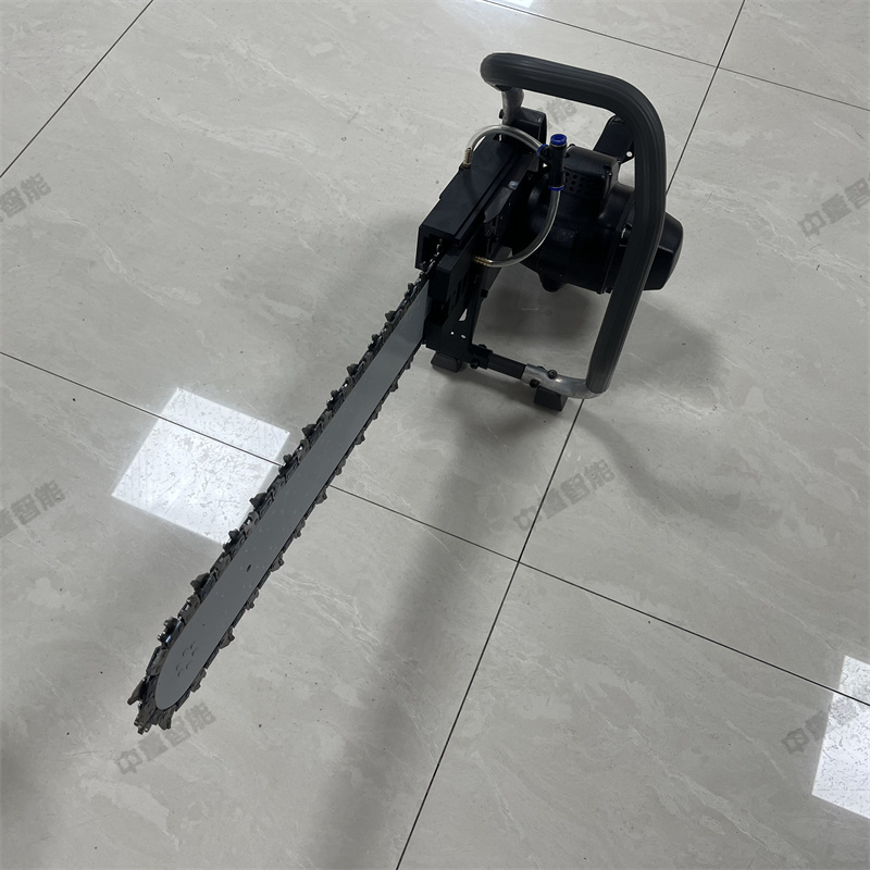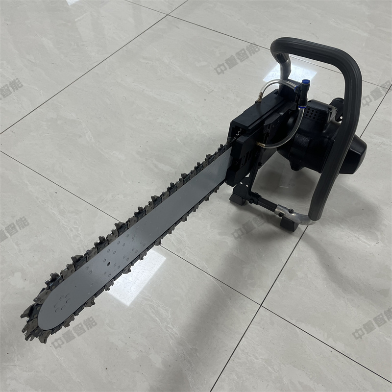 煤礦用氣動鏈條鋸(以下簡稱鏈條鋸),是我公司經過多年的損索,在機電、通風、采煤等各科室的高技術素質科技人員的通力合作下,為煤礦開發出的礦用切割與開槽工具。 鏈條鋸由鋸頭、金剛石鏈條、液壓膠管三大部分組成,液壓膠管將氣源和金剛石鏈條鋸連接起來,氣源提供的氣壓驅動金剛石鏈條鋸高速運轉,進行切割。工作時,冷卻水通過鏈板中間的孔流向切割部位,起到冷卻和降塵的作用。 鏈條鋸具備雙重斷水保護功能。 鏈條鋸在切割時采取了濕法切割水冷卻,以避免切割時出現火花! 鏈條鋸可用于采掘工作面使用的煤層、巖石切割,用于密閉墻的砌筑,也可用于礦山救援時的混凝土與巖石破拆。