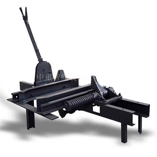 手動阻車器其任務(wù)是將運動中的礦車停止在某一要求的固定地點,和推車機、搖臺、安全門等設(shè)備相互配合,使操車作業(yè)達到機械化和自動化的目的。手動阻車器按線路設(shè)置可分為前后阻車器兩種。前阻車器用于待裝礦車的限位,后阻車器則用于阻止列車。