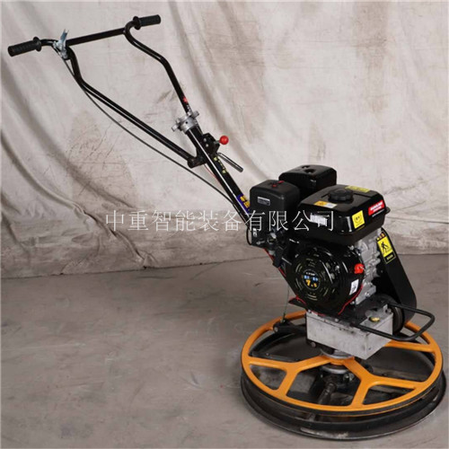 路面抹光機又叫做水泥收光機,它的主要結構是一個汽油機驅動的抹刀轉子,在轉子中部的十字架底面裝有2~4片抹刀。抹刀傾斜方向與轉子旋轉方向一致,由汽油機帶動三角皮帶使抹刀轉子旋轉。