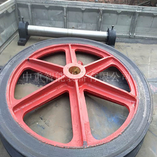 天輪安裝在井架上,作支撐,供礦井提升時(shí)支拖提升機(jī)卷筒到提升容器之間,引導(dǎo)鋼絲繩轉(zhuǎn)向之用。繩槽帶塑襯或膠塊,增加鋼絲繩的使用壽命。