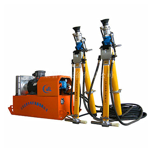MYT系列液壓錨桿鉆機適用于頂板硬度≤f12的各種煤巷、半煤巖巷、巖巷的頂板錨護作業,作業時配合B19/B22六方鉆桿、鉆頭及錨桿(索)攪拌器完成頂板錨護作業,是集鉆孔、攪拌、安裝于一身的液壓錨護工具。鉆機備有專用液壓泵站,也可與掘進機、扒渣機以及鑿巖鉆車配套使用。