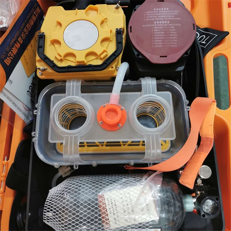 型號 | 氣瓶容積L | 最大供氣流量Lmin | 呼吸阻力Pa | 報警壓力MPa | 使用時間min | 整機重量kg | 包裝尺寸 | |