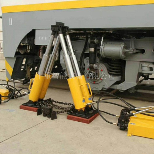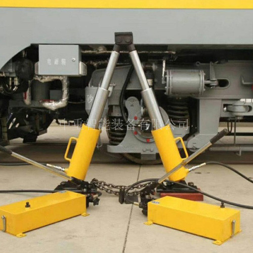 運(yùn)行在各礦區(qū)地面用井下線路上的礦車,由于超速、碰撞、線路質(zhì)量等各種原因,經(jīng)常會(huì)發(fā)生脫軌掉道現(xiàn)象,給生產(chǎn)、安全帶來很大的影響。因此,出現(xiàn)了復(fù)軌器,是專門為解決礦車復(fù)軌問題而研制的復(fù)軌工具。將掉道車輛進(jìn)行舉升然后再進(jìn)行左右橫移至復(fù)軌,由舉升缸、橫移缸、橫移橋、橫移小車、頂托和油泵組成。直頂橫移型 復(fù)軌器舉升油缸為三級(jí)液壓油缸,油缸頂復(fù)點(diǎn)在車輛的車鉤、中梁或者心盤,舉升到一定的高度后,通過橫移缸推動(dòng)或者拉動(dòng)一次完成車輛的掉道和救援起復(fù)作業(yè)。復(fù)軌器是一種能使脫軌的機(jī)車、車輛的輪對(duì)復(fù)位到鋼軌上的專用工具。 運(yùn)行在各礦區(qū)地面用井下線路上的礦車,由于超速、碰撞、線路質(zhì)量等各種原因,經(jīng)常會(huì)發(fā)生脫軌掉道現(xiàn)象,給生產(chǎn)、安全帶來很大的影響。按外形分為人字型復(fù)軌器 、海參型復(fù)軌器、組裝式復(fù)軌器以及S-1型鋁合金雙向復(fù)軌器 ;按用途分為普通線路上用、岔區(qū)專用、橋上專用、及端面復(fù)軌等四種復(fù)軌器;根據(jù)材質(zhì),復(fù)軌器可分為鑄鋼、合金鋁、鋼板焊接式三類復(fù)軌器。