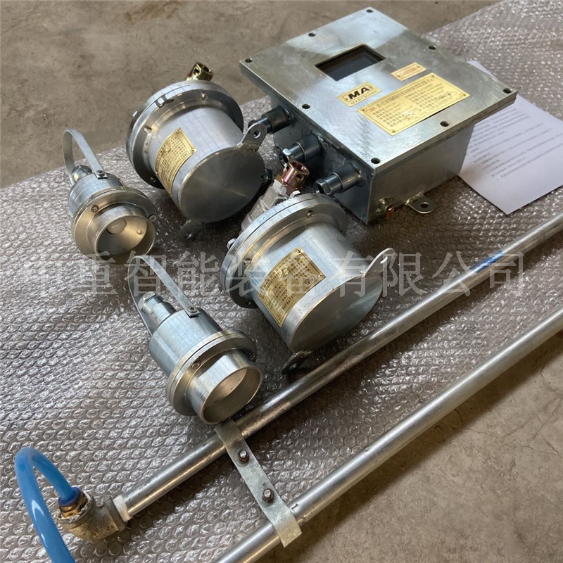 ZP-127Z礦用隔爆兼本安型自動灑水降塵裝置主控箱、GUR8礦用本質安全型熱釋紅外傳感器、DFH-20/7型礦用本安型電動球閥以及管路噴嘴等。