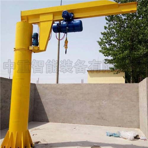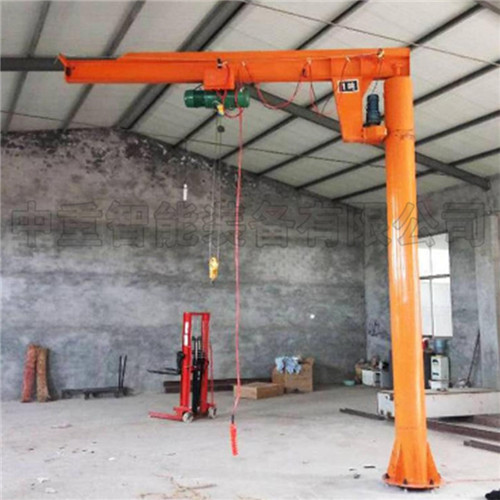 懸臂吊起重機工作強度為輕型,起重機由立柱,回轉臂回轉驅動裝置及電動葫蘆組成,立柱下端通過地腳螺栓固定在混凝土基礎上,由擺線針輪減速裝置來驅動懸臂回轉,電動葫蘆在懸臂工字鋼上作左右直線運行,并起吊重物。起重機旋臂為空心型鋼結構,自重輕,跨度大,起重量大,經濟耐用。內置式行走機構,采用帶滾動軸承的特種工程塑料走輪,摩擦力小,行走輕快;結構尺寸小,特別有利于提高吊鉤行程。